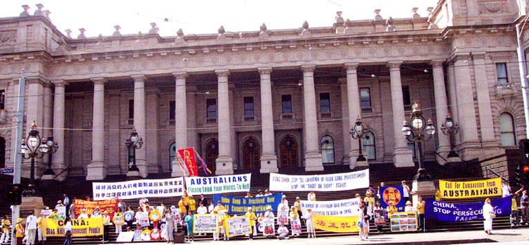 游行结束后,学员们在国会大厦前举行了集会,市议员戴维.瑞思曲穆(David Ristrum)作了演讲。他谴责了中国政府对其人民信仰自由的剥夺,并呼吁澳洲政界和澳洲人民行动起来,制止镇压。