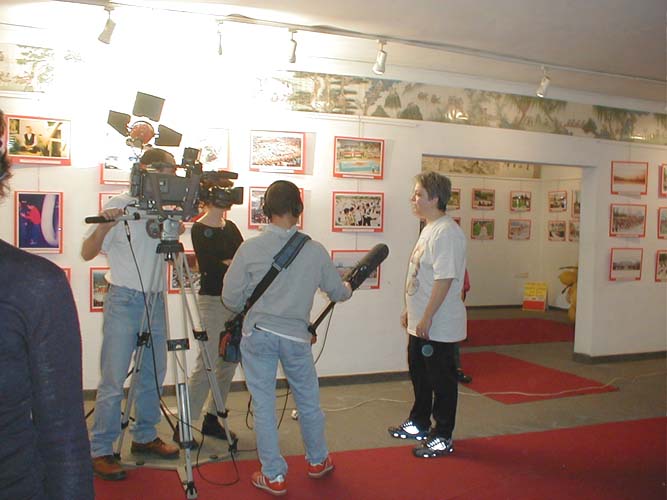 今天以色列有线电视台又专程来报道“正法之路”图片展的新闻,使更多的以色列人民再一次了解法轮功的真相。记者一张一张地不停地摄下“正法之路”的图片,从这个房间到另一个房间,然后专门采访了学员。学员把中国大陆受迫害的法轮功学员的悲惨遭遇一一述说,随后记者摄下一张张受迫害的大法弟子的图片证据。然后把我在中国受迫害的八个月告诉记者。图片展里放了我的简介和数幅国画,人证、物证记者一一摄下。