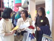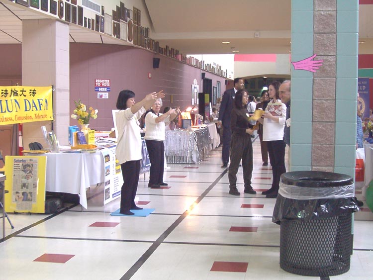 一年一度马里兰州蒙哥马利郡主办的妇女健康展览会于贝莱尔高中举行。“法轮功”亦是一百多个展位之一。一早开始,几位大法弟子就忙着发资料并。马里兰州及蒙郡多位众议员先后光临会场,也都停留在我们的展位,得到了大法的资料,并且说:“我们都明白法轮功在中国被镇压的这些不幸的情况,我们深感同情。”其他所有在我们展位停留的来宾,也都了解了法轮功在中国被的真相,表示非常地难过和不平。一位乔治城大学政治系教授仔细地问了很多的问题,收集了很多的资料,临行时主动在‘呼吁停止镇压法轮功’的单子上签了名。隔壁展位的老太太跟着大法弟子炼功后,取了英文资料外还拿了许多中文资料要送给她的中国好朋友。还有一位正义的老太太,问清了更多的真相后表示要直接写信给‘罪魁祸首’。