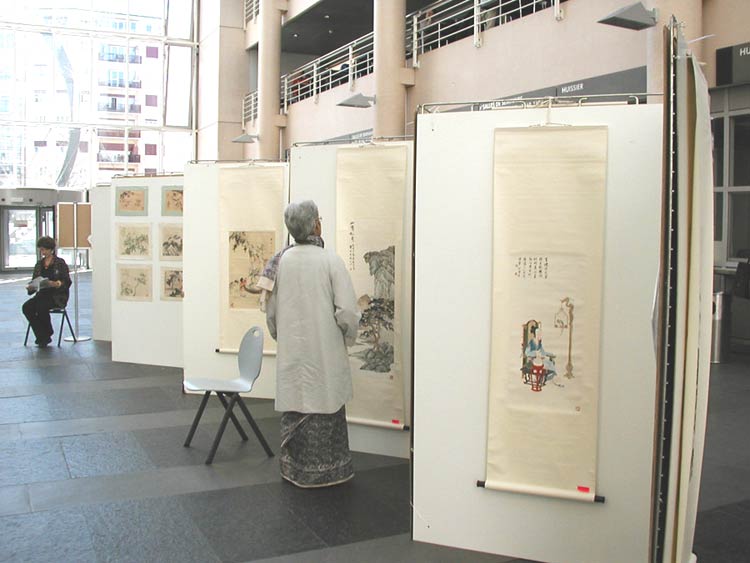 章翠英个人画展3月21日在日内瓦大学的UNI MAIL走廊大厅正式开展,画展历时两天。厅内展出了章翠英国画50多幅,其中有山水、人物、仕女等,集其几十年作画之精粹,其中两幅新裱的五米长卷“韩熙载夜宴图”及“文姬归汉”更是吸引了很多学生、老师前来观看,留连忘返。