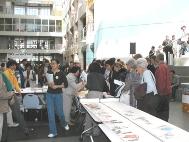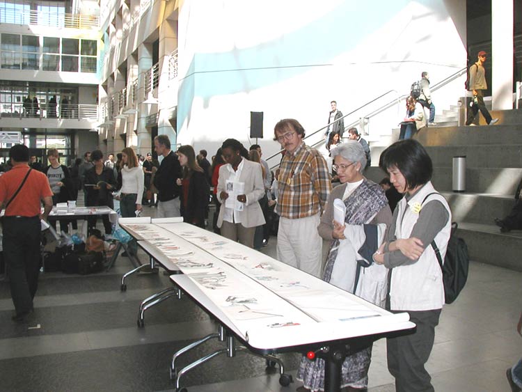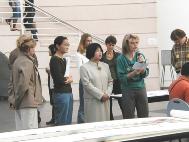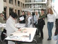厅中还同时展出了“法轮大法”、“真善忍”、“和平历程”、“迫害”等讲真相图片。厅内的一角连续播放“法轮大法的和平历程”、“自焚真相”等录像。学员们发放了很多中、英文的大法资料,并与瑞士学生们聊天,介绍大法在中国受迫害的情况。