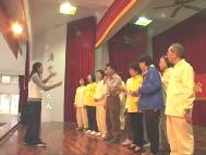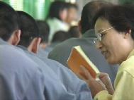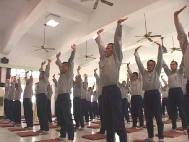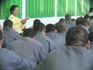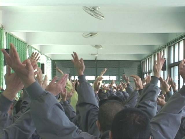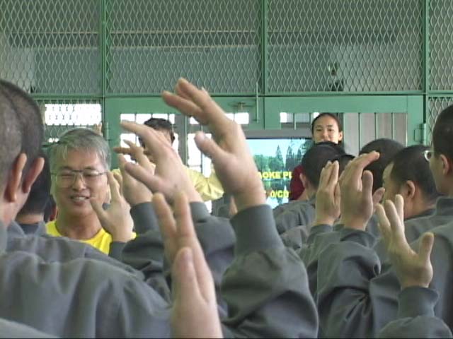 2002年3月7日、8日两天,大法学员再次进入台中看守所洪法教功,并透过心得交流与「黑暗中的光明」--刘玉燕的故事,向大家进一步介绍法轮大法的美好与高尚。一连两天的活动除了教导烟毒戒治班的人学炼五套功法,带领他们齐声朗读《转法轮》外,更包括了众人齐聚在大礼堂中学唱大法弟子创作的歌曲的活动;当音乐飘散在空气中,当「登归途」「如梦令」、「法轮大法好」的大法弟子创作的歌曲从受刑人变得充满朝气的面容与口中清亮地传出时,我在他们的身上又一次见证了大法的慈悲。