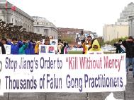 日内瓦论坛报3月21日报导,700多名来自世界各地法轮功同情者在万国广场举行3天的示威活动,呼吁国际社会向北京施加压力,停止这场镇压。示威者组成长长的悼念队伍,纪念那些捐躯的中国人。一部分成员绝食请愿,以引起人权委员会成员国的关注。有数位日内瓦议员到场表示支持。