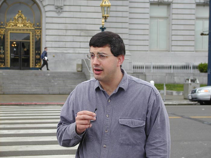 随后,在学员请愿的标语前,旧金山市政府议员戴利(CHRIS DAILY)表达了他本人对江泽民政府迫害法轮功学员升级的关注。他说:“来到这里,是我作为市议员的职责。旧金山是一个拥有长久支持人权历史的城市。在60年代和最近发生在缅甸的人权事件,旧金山市都站出来,表达过关注。我们也希望,在不久的将来,市议会通过决议,谴责发生在中国的政府对人权的压迫事件。我本人非常敬佩法轮功学员在面对这场由中国政府发动的残酷迫害时,能够挺身而出向民众讲清真相的勇气。我呼吁我的同事,市议会的其他议员以及市长,和你们站在一起,谴责中国政府的镇压、揭露谎言、声援正义。也希望你们继续努力,真相一定会昭示于人,正义必胜!”
