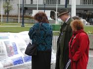 | 政府议员戴利发言 | 制止虐杀 | 路人观看展板 |