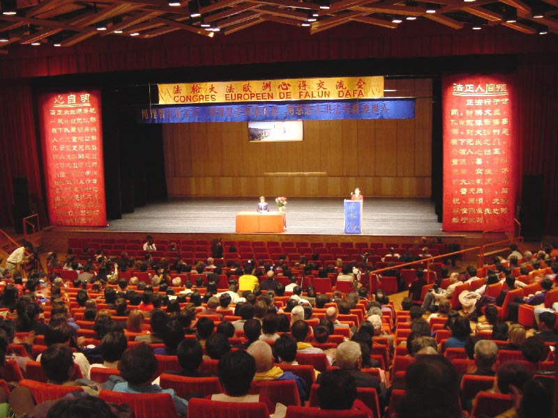 2002年3月23日上午9:00,欧洲法轮大法心得交流会在瑞士日内瓦隆重召开。约1,000名来自亚太、非洲、拉丁美洲,北美洲和欧洲近40个国家的大法学员参加了这次盛会,15位弟子做了发言。大会于下午5:00圆满闭幕。法会的特点之一是发言者绝大多数为欧洲西人弟子,包括至少两个法轮功修炼家庭发了言。