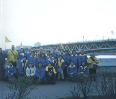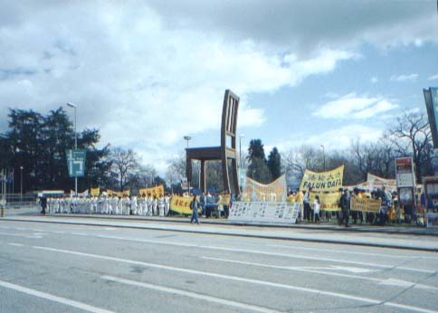 19日我们到步行街广场炼功弘法,周围都是商家,人潮不少,电视台来采访,接着游行市区,行经市长办公室、国会大厦、电视台、外交部,沿途播放普度济世音乐,发简介。傍晚前往日内瓦,夜宿防空洞,与其他世界各地弟子会合,在联合国前广场绝食请愿两天,瑞士法会结束后,当晚坐巴士清晨抵达巴黎,赴中国城发资料。中国人好多,有的当街就看起来了,有的主动前来了解真相,次日一早我们搭机返台。