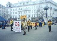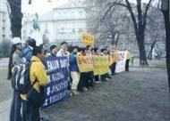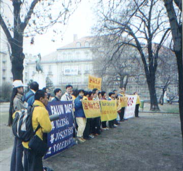 当晚抵达布达佩斯。这是我们此行的重点,因为那里有几万中国人,仍受中国政府污蔑大法不实报导毒害甚深,而该国人民亦大多未闻大法。我们隔天火车站发简介,18日上午召开记者会,下午到中国市场发真相资料,大部分接受度高,少数中国人被蒙蔽太深,出言不逊,大家仍秉持修炼人慈悲之心,不跟他们计较。17和18日晚上到中共大使馆发正念、炼功,气温很低,学员们正念很强,场面庄严平和,第二晚警察就把围在使馆前的铁栅栏改为一条细细的塑料绳。