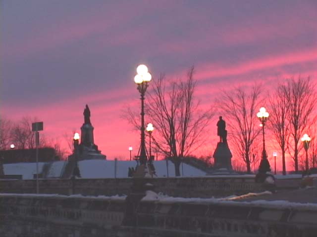 寒风中,学员们持续发正念,炼功。5:30左右,数辆满载着大量中国代表团成员的汽车驶进国会山。当几十名代表步入中间国会大楼时, 学员通过扩音器向代表团成员大声呼吁:“法轮大法好!”正在炼功的学员纷纷转过身来,朝向经过的中国代表团高喊,“停止迫害法轮功学员!”“法轮大法好!”“法轮大法是正法!”“江泽民迫害法轮功天理不容!”“善恶有报是天理!”所有代表团成员都听到、看到了学员们在请愿现场的呼吁。一时间,法轮大法好的声音象此起彼伏的波涛,响彻国会山上空。此刻,天空中云蒸霞蔚,绯红一片,极为壮观。
