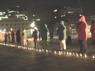 大约一个小时后,学员们开始烛光守夜悼念。在烛灯围成的两个区域内,学员们集体炼功、发正念。几乎每个学员都感受到了强大的正念之场。