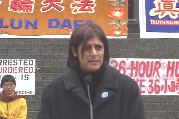 莎瑞.牟德女士代表四万六千名医院员工工会成员敦促加拿大政府要求中国政府尊重它在国际人权公约中所应履行的义务,并尊重法轮功学员为争取人权的奋斗,立刻停止对法轮大法修炼者的迫害。