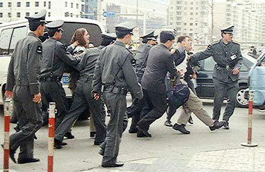 据北京中关村一网络报纸证实,杰森和克里思婷是在北京时间3月28日下午3点30分左右在中关村海龙市场附近被抓,当时至少有15名以上的公安在场,杰森和克里思婷每人身边都有4名警察用很粗暴的方式拖着他们走。克里思婷一直在高喊“法轮功好”。警察在不到两分钟的时间里把他们拖到了海龙大厦后面的地下一层,随后驱散了围观的民众。