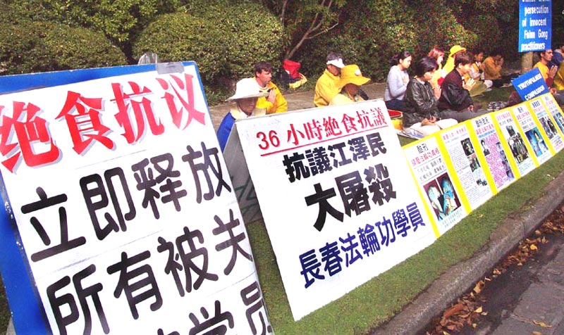 入夜,澳洲广播公司(ABC)的记者赶来参访了绝食的学员,曾在天安门请愿并遭野蛮殴打的一名西人学员回答了记者的提问,表达了在中国长春5000名无辜百姓被捕,多人被谋杀的危急情况下,只能以这种有节制的和平方式呼吁民众支持及强烈要求停止对大法弟子的残酷镇压、撤销屠杀令。