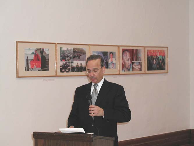 “法轮功之友”执行主任阿兰.艾德勒先生在开幕式上呼吁知道法轮功真相的人们,再告诉家人、朋友,把法轮功真相传播开,并希望所有善良的人们能够帮助制止这场正在发生的法西斯大屠杀,绝不允许邪恶在这个世界上肆无忌惮地逞凶。阿兰.艾德勒先生用“真实”这个词形容他观看这些照片时的感受,他说:“这些照片反映了在中国的法轮功学员的真实遭遇。我知道看这些照片令人很难受,没有人愿意看到男女老少被打得几乎无法辨认,但我们必须面对事实,因为这是真实的。看这些照片就象过去看法西斯大屠杀时的照片一样的感觉。”