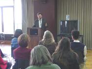 不久前从天安门广场请愿归来的法轮功学员李维.布朗迪(Levi Browde)主持了招待会。美国国家新闻爱米奖(National News Emmy Award)获得者,资深新闻记者丹尼.史彻特(Danny Schechter)介绍了他调查收集到的法轮功受迫害的情况和他根据这些资料写的著作《法轮功挑战中国》(Falun Gong's Challenge to China)。招待会上还放映了丹尼.史彻特制作的同名新闻记录片。丹尼.史彻特在讲演和放映记录片后回答了观众的问题。
