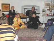 最后他们邀请法轮功学员当场示范功法,大家看了后齐声鼓掌,直到深夜1点多来宾们才依依不舍地离去。
