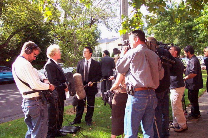 可能是因为被捕的学员几乎都来自墨尔本,本地的所有电视台:10,7,9频道电视台,SBC民族台和澳洲广播公司ABC电视台及其它有影响的电台都派出了摄制组和记者,这在墨尔本还是第一次。走向天安门的同修们心怀大善大忍、舍弃一切为法轮大法鸣不平的精神吸引着媒体记者,学员们利用这一难得的机会揭露邪恶。