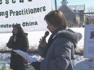 休士顿学员中领馆前举行发布会呼吁紧急救援大陆学员(图) 3月7日下午一点至三点,休士顿大法学员在中领馆前举行新闻发布会,英文第二十六电视台采访人员准时赶来采访,