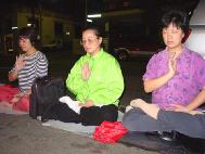 悉尼大法弟子中领馆前抗议江泽民独裁枉法屠杀令(图) 悉尼大法弟子为紧急声援长春大法弟子及国内大法弟子,抗议江泽民的法西斯杀戳暴行,于3月7日(星期四)晚6时至9时,在中领馆前抗议静坐,整点发正念除恶。