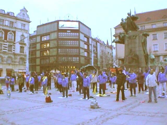 炼功演示都设在重要的历史景点,如拉德肯尼(Hradcany)广场,皮斯(Piece)广场,和帕拉基(Palacky)广场。