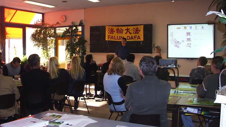 当天,四位大法弟子来到该校作了法轮功专题讲座。共有约30位语法教师参加。介绍会先是大法简介,然后回答提问,最后是教功。我们的讲座使他们轻松愉快地开始了全天的课程。