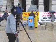 WSB(channel 2), WGNX (channel 46)电视台和大.纪.元;时报等新闻媒体现场采访了曾于今年2月14日去天安门和平请愿的三位北卡州法轮功学员:MR.Drew Parker (北卡大学学生),MRS.Tina Bakatsias (公司经理),MR.Thai Ton (生物学家)。