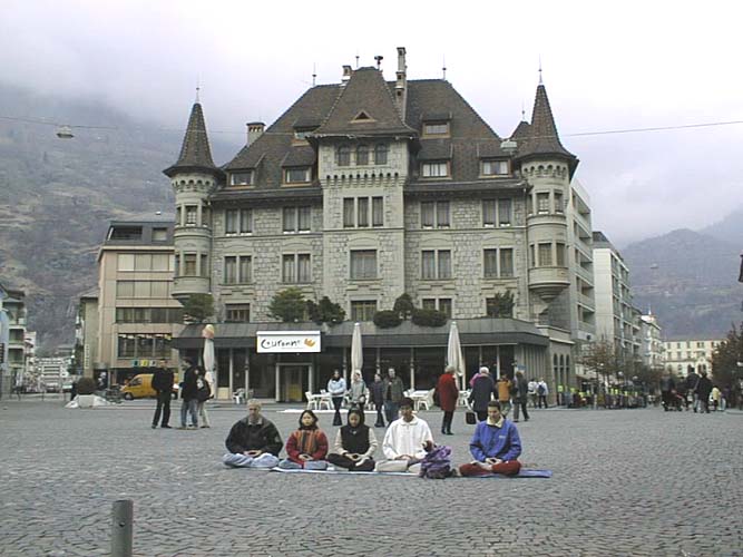 驱车历经四个半小时,我们首先到达Brig地区。一下车,弟子们立刻开始了洪法讲真相活动。因当地没有大法弟子,我们又是第一次来洪法,所以这里很少人知道法轮功。我们演示五套功法,祥和的炼功场面,优美动听的音乐吸引了很多游人驻足观看。他们踊跃地索取大法材料,并签名谴责对法轮功的迫害。其间,曾有几个年轻人走入我们中间起哄,并口出狂言。一位大法弟子向他们讲真相,他们却甩手扬长而去,这位大法弟子深感自己责任重大,于是紧紧跟上他们,对他们说,“你们不了解法轮功,我要向你们讲清真相”。几个年轻人停住了脚步,认真地听大法弟子讲真相,他们边听边点头,并异口同声地说原来是这样,最后都拿了材料,并多要几份给他们的朋友。弟子们深为他们的转变而高兴。