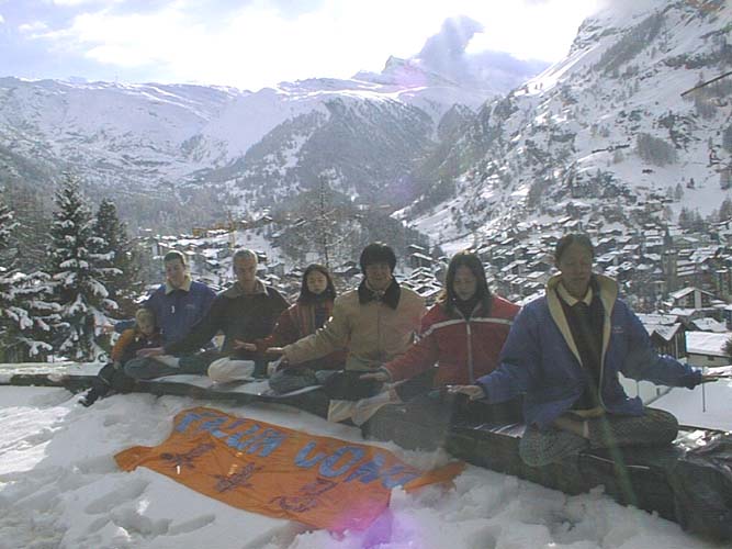 到旅馆后,同修们抓紧时间学法、发正念,至深夜12:00才入睡。第二天早8:00我们又驱车奔向世界有名的Matterharn Zermatt山区。这里风景优美,是著名的旅游和滑雪胜地。但由于地处偏僻,远离中心大城市,又相对闭塞,了解法轮功的人不多。我们带了各种文字的大法材料,向游人和山区居民信箱分送大法材料。无论是当地人,还是游客,都非常愿意接受大法材料。一位法国妇女拿到大法材料时,立刻大声朗读起来,她的声音吸引了很多游客,人们不断地向我们索取材料。由于这里山高路滑,山上本来积雪未化,又加昨天下的雪,越发使我们行走困难。除了向路人发材料,我们还要寻找信箱,稍有不慎,就会滑倒。小弟子发挥了作用,她们拉着装材料的小车,飞快地山上山下往信箱送材料。年纪大的弟子源源不断地提供给他们材料。当我们把各种文字材料送给各个旅馆和餐馆时,他们都非常欢迎。并主动问与我们联系的方式,以便材料发完时及时联系,我们立即表示会及时把材料寄给他们。有一位中国餐馆老板要求炼法轮功,他说:“法轮功那么好,让人做好人,讲‘真、善、忍’,使人身心健康,却遭到中国政府镇压,我实在想不通。”