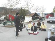 在苏黎世(Zuerich),电视台采访了无辜被关押在劳教所长达2年之久的法轮功学员林慎立先生。采访长达一个多小时。记者和摄影师的态度非常友好,一见面时就为林先生的释放表示庆幸。他们始终给予林先生充分的回答时间,不时表露体谅和同情之心。林先生在劳改营所遭受到的折磨与人权的剥夺使他们万分震惊。在整个采访过程中气氛祥和宁静。采访结束后,他们表示希望允许录下几个炼功片段,于是林先生和两位苏黎世的学员在户外草地上示范了佛展千手法。柔和的功法配上舒缓的炼功音乐深深打动了记者与摄影师。