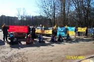 俄罗斯大法弟子在莫斯科中使馆前举行抗议示威(图) 学员们举着“我们要求中国(江泽民)政府停止镇压”、“我们反对在中国虐杀和迫害”等多幅标语牌,静坐、发正念,向路人发放真相资料,揭露邪恶。当学员们向在场的警察发放真相资料时,他们很友好地说:“我们了解法轮功,知道法轮功好!”