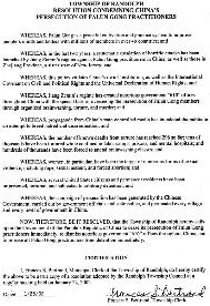 鉴于,这场由中国(江泽民)政府发动,政府官员和国家警察执行的迫害运动已经渗透到中国的每一个村庄及每一级政府;