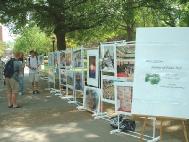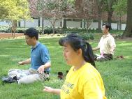 图片展设在学校人流最多的蓝天步行大道路边,近三十幅图片及展板向人们展示了法轮功真善忍之旅,大法学员们有的向人们介绍法轮功,有的在路边的草地上做功法演示,并集体多次发正念。