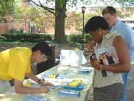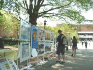 由于展览在室外举行,醒目精美的图片吸引了来来往往的师生驻足观看,有的索要大法资料,有的听说法轮功学员在中国遭到的迫害,纷纷签名表示支持。也有中国学生学者路过,学员便抓住机会向他们讲真相,澄清他们头脑中的误解。一位中国学者曾练过其他气功,与学员长时间交谈后,对法轮功饶有兴趣,看了法轮功在全世界弘扬的图片后,他说,法轮功肯定有着独到之处,才能吸引众多的人,他还拿走真相光盘及资料,并打听了大法网址。也有的美国学生在课题上听说过法轮功,很高兴看到我们在校园里办大法图片展,也有机会对法轮功有了更多的了解。