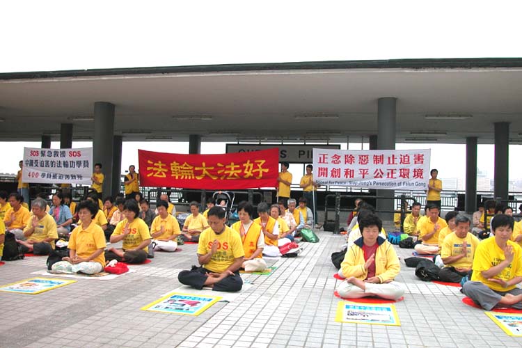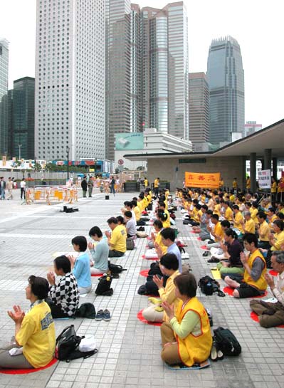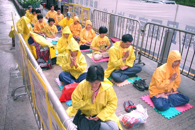 学员们没有被警方的无理做法激怒,没有动了常人心而掉进邪恶摆下的圈套。一众约二十人在警方调遣多人看守的高压戒备下安稳不动,在距离正门前二十米的请愿区静坐、发正念,于阵雨中完成了三个小时的活动。对于当局滥用权力的不正做法,学员将本着善心,继续以和平、合法而理性的方式寻求公道。