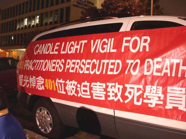 纪念4.25三周年,澳洲墨尔本学员在中国领事馆门前举行24小时烛光守夜活动。