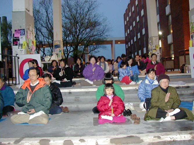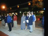 晚11时,在法轮功学员的倡议下,全体发正念,铲除迫害大法的一切邪恶,烛光守夜活动圆满结束。