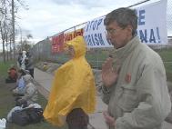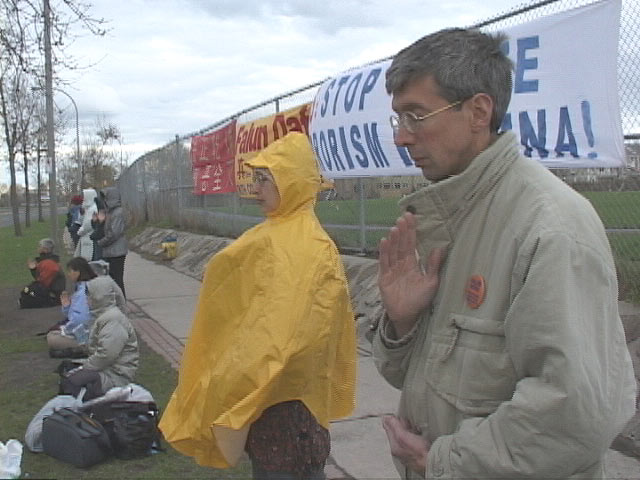 【明慧网2002年4月28日】“三年前的今天,一万名法轮功学员在国务院信访办前集体和平请愿,希望中国政府释放被非法关押的天津法轮功学员。然而和平请愿却被江泽民政府诬蔑为反政府的政治事件,从此开始对无辜善良的法轮功学员进行了大规模的残酷。尽管如此,法轮功学员在过去三年中,始终按照‘真、善、忍’的要求,在世界范围内进行和平请愿,呼吁中国政府制止江泽民集团对法轮功学员的迫害。为了纪念4.25这个象征着和平的日子,为了悼念在残酷的迫害中失去生命的法轮功学员,为了呼吁营救那些仍然在和紧急危险中的法轮功学员,我们来到这里举行烛光守夜活动。……”法轮功学员周露西女士在接受当地电视台NEWRO现场采访时,作了上述发言。