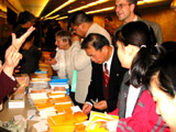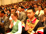 下午2:45分,当会议主持人宣布我们至尊至敬的李洪志师父亲临法会时,全场掌声雷动。李洪志师父向大家再次强调了学法的重要以及大法弟子遇到任何问题都要向内找,要宽容、大度、理解别人。师尊简短的讲话,极大地鼓舞了在场的每一位学员。之后全场学员和全世界大法弟子一起三发正念清除邪恶。
