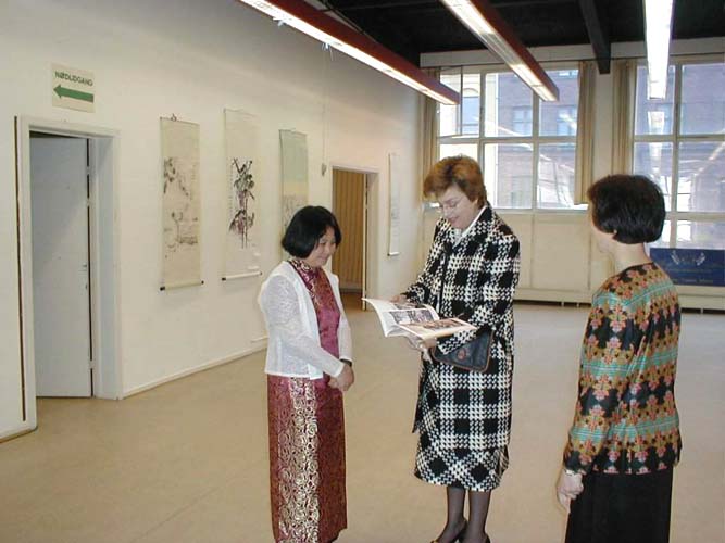 丹麦国家装潢艺术馆东方艺术部检察员JOERGEN SCHOU CHRISTENSEN也前来参观章翠英的画作,并对画家表示欢迎与祝福。