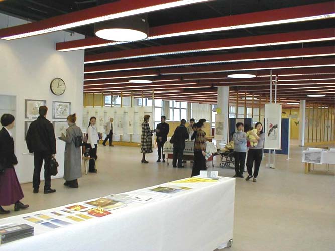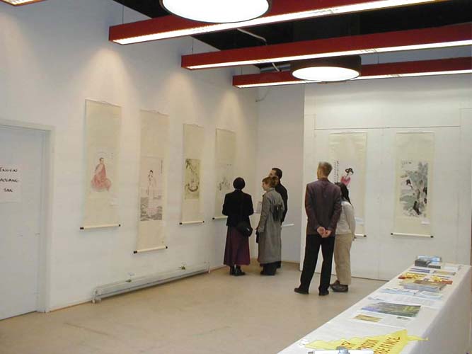 由于在开展前,我们除了在报纸上登出广告,四处张贴彩色海报外,还专门做了中文广告,夹在中文报纸里。因此,有许多中国人前来看展。他们一般都会和我们较长时间地交流对法轮功的看法。有的人甚至一连几天来到画展厅,向我们提问题,交谈,甚至当天就访问大法网站,下载大法书籍阅读。我们发现甚至一些同情大法的人们,思想中也不自觉地受到江泽民流氓政府的谎言欺骗而不自知。当他们在和大法弟子交谈后,往往是恍然大悟。同时对大法弟子如此清晰的思路与见解由衷地敬佩。有的人在告别时,真诚地请我们代他向师尊问候,并祝我们成功。当人们在大法纯正的威力面前如此急速地改变时,我们除了欣慰外,更多地是意识到,我们讲清真相,救渡众生,还有许多事要做。