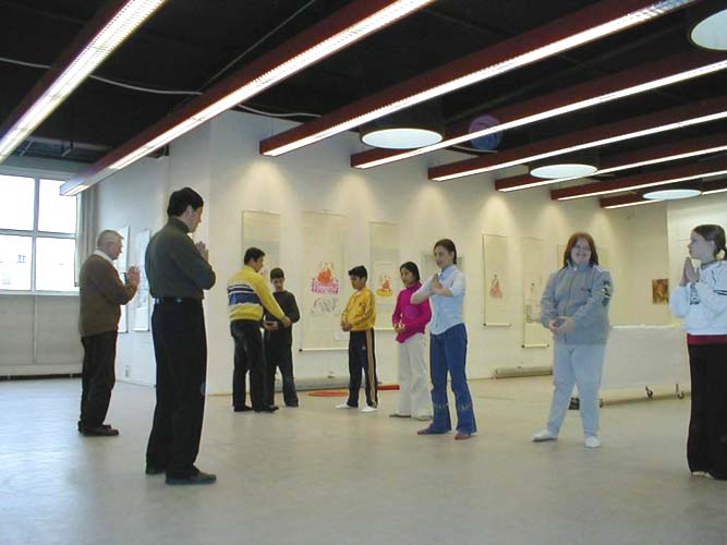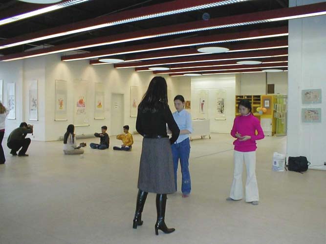 这次画展,还吸引了许多孩子们前来参观。他们不仅看画,看录像,看图片,还兴趣盎然地向我们学功法,有趣的是他们几乎个个都会双盘!