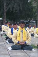 我们每天的活动以早上在广场集体炼功开始,这个广场周围有许多中国店,当然也有许多中国人。我们开始炼功前常常是阴天,但很快太阳就出来了,我们炼功两个小时之后发正念。