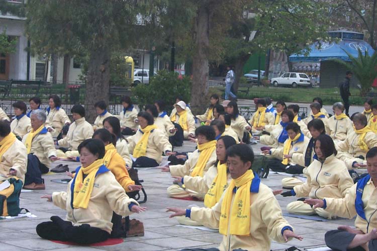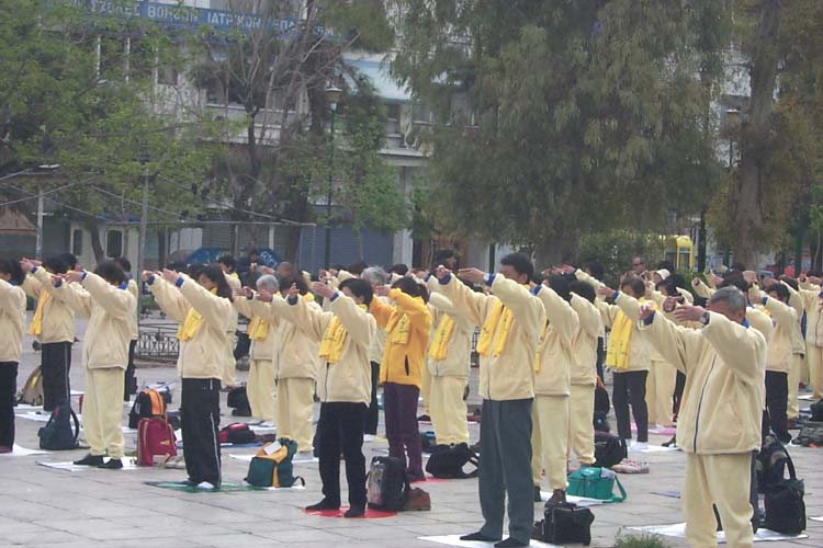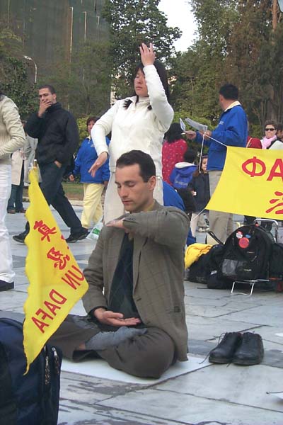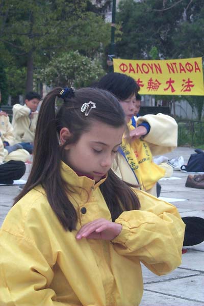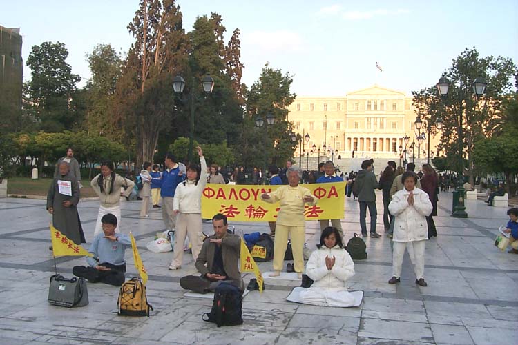 【明慧网2002年4月5日】2002年3月24日至30日,上百名主要来自台湾的法轮功学员和希腊学员在希腊首都雅典成功举行了一系列洪法教功活动。除了计划好的活动外,在很多著名景点都可见到身穿黄、蓝色炼功服的三三两两的法轮功学员,在展示功法或发放洪法传单。这次活动发出了大约六万份传单,很多有缘人因此认识了大法,我们告诉他们可以参加我们的早上炼功,其中一些人确实来学了功法。