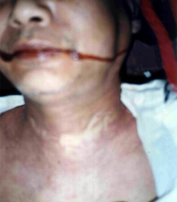 仅过了几天,即正月初四晚11点钟,张的家人就接到驷马桥派出所通知“张川生因心脏病死于2月15日上午九时”。张川生的死相令人触目惊心——脸青黑紫肿,脸边嘴角血痕斑斑,脖子上有二指宽青紫色深度勒痕!张的家人问及原因,恶警答曰:“他的手握成拳头,我们是为了扳开他的手,不是故意打他、勒死他。”随之,警察恐吓张的家人说:谁敢说出张川生的死因,他全家人都别想活了。