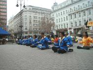 来自匈牙利,德国,奥地利,瑞典和台湾五个国家的法轮功修炼者们聚集在Vorosmarty广场集体炼功。许多行人很愿意接受我们的介绍法轮功及其在中国受到迫害的传单。当我走近广场时,呈现在我面前的是这样一幅美丽祥和的画面。