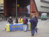 在整个活动中,大家感到现在人们越来越清醒,正念越来越强。当看到大法弟子在发资料时,纷纷上前索取,许多人希望进一步了解真象。了解了真象的人对大法越来越支持,对江氏流氓集团的所作所为纷纷感到震惊和愤慨。一位大法弟子说,现在的人和以前明显不同了,见到我们就象见到亲人一样,很热情。有时当人们拿到一份真象的资料时,还没看内容就连声道谢。一位女店主听完学员的讲述后,随即将学员给她的传单贴在了商店的大玻璃门上,以便让过路行人都能看到。一位行人问学员发的是什么材料,学员说是关于江泽民邪恶集团迫害法轮功的,这位行人说:“这个人我知道,他是通过六四爬上权利最高峰的。” 这类例子数不胜数。