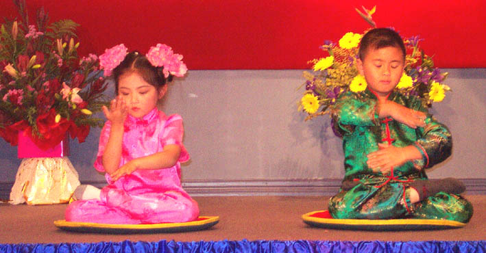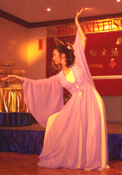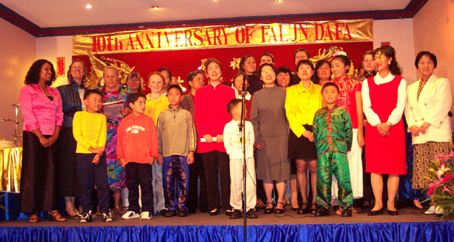 席间,中西大法小弟子展示了法轮功优美的五套功法,还在“普度”的乐声中表演了莲花舞,纯真、稚气的表演引来阵阵热烈的掌声。专程赶来参加晚会的悉尼大法弟子献上了非常精彩的舞蹈表演“飞天”。两名西人女弟子演唱了各自专为晚会创作的歌曲“呼唤你”、“站起来”,用自己的心呼唤着世人的觉醒,感人泪下。几个独唱、合唱节目之后,大家共唱一曲“法轮大法好”,那深远的意境、洪大的气势,感染着每一位来宾,写到此,不禁想起师父的新经文“法轮大法好 渐入世人道”。