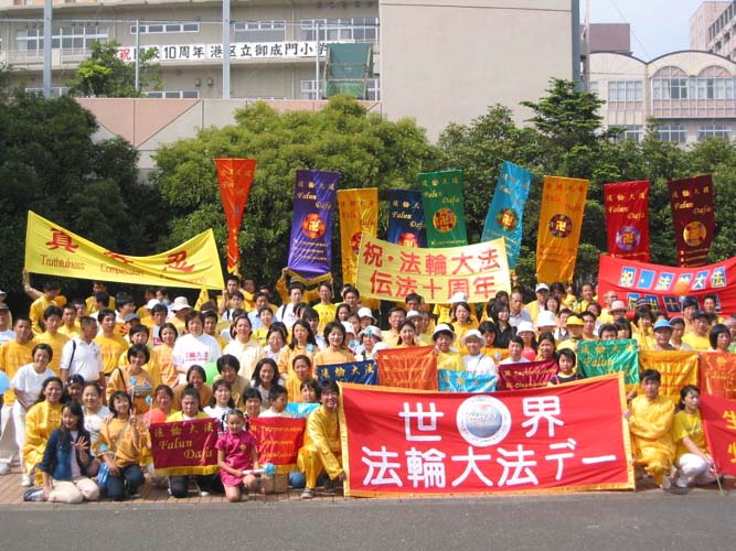 全体日本法轮大法弟子,祝贺法轮大法传法十周年暨世界法轮大法日。