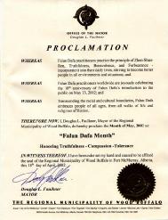 鉴于,全世界法轮大法修炼者于2002年5月13日同庆法轮大法洪传十周年;并且