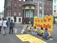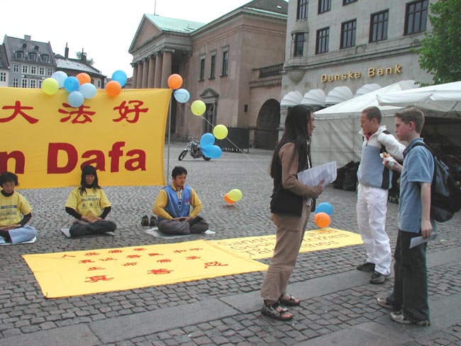 图片报道:丹麦大法弟子于5月12日在哥本哈根市中心庆祝世界法轮大法日